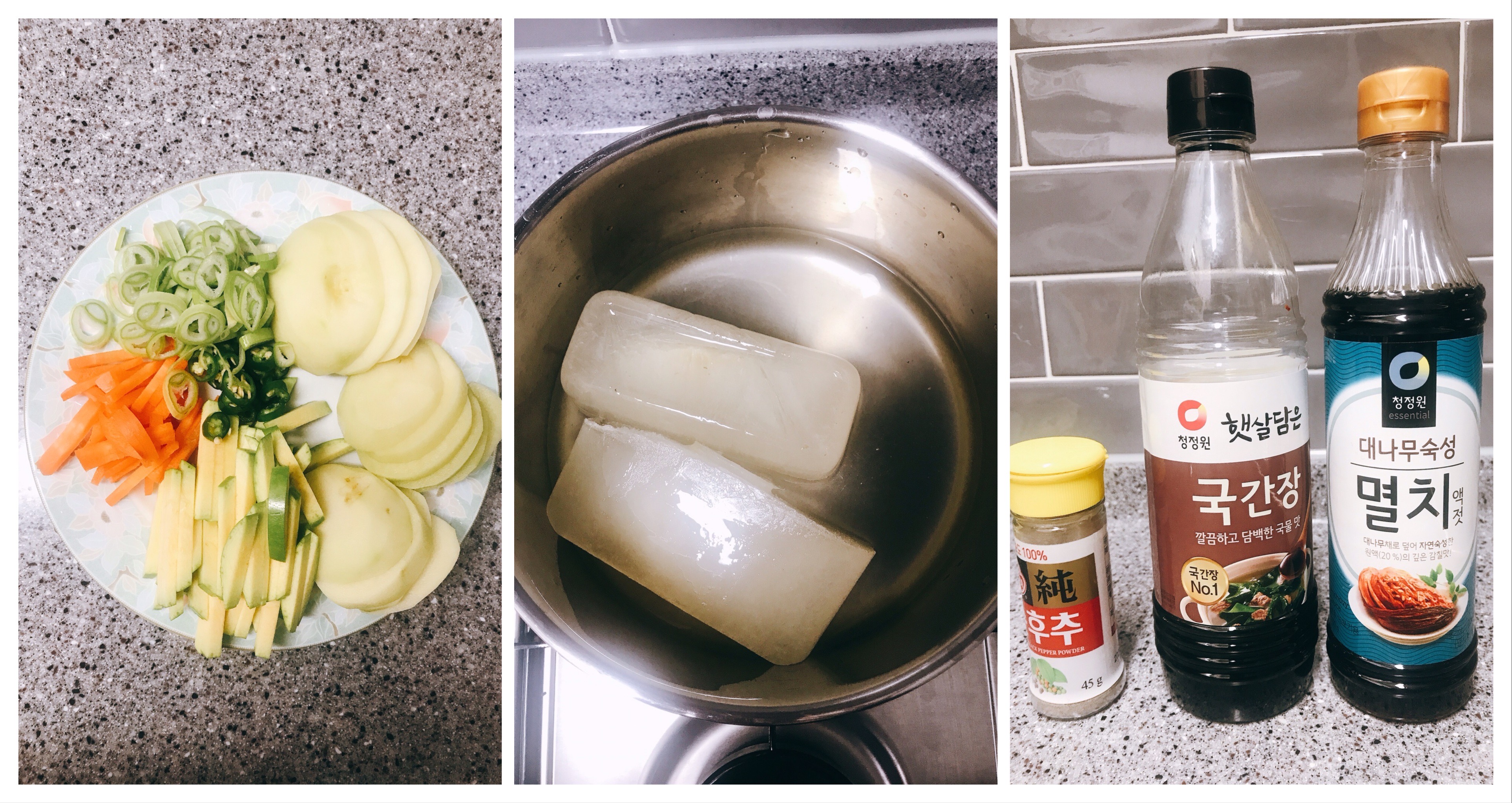 감자 호박 청양고추 당근 파를 원하는 만큼 준비하시고 육수는 얼려놓은게 있어서 사용합니다~