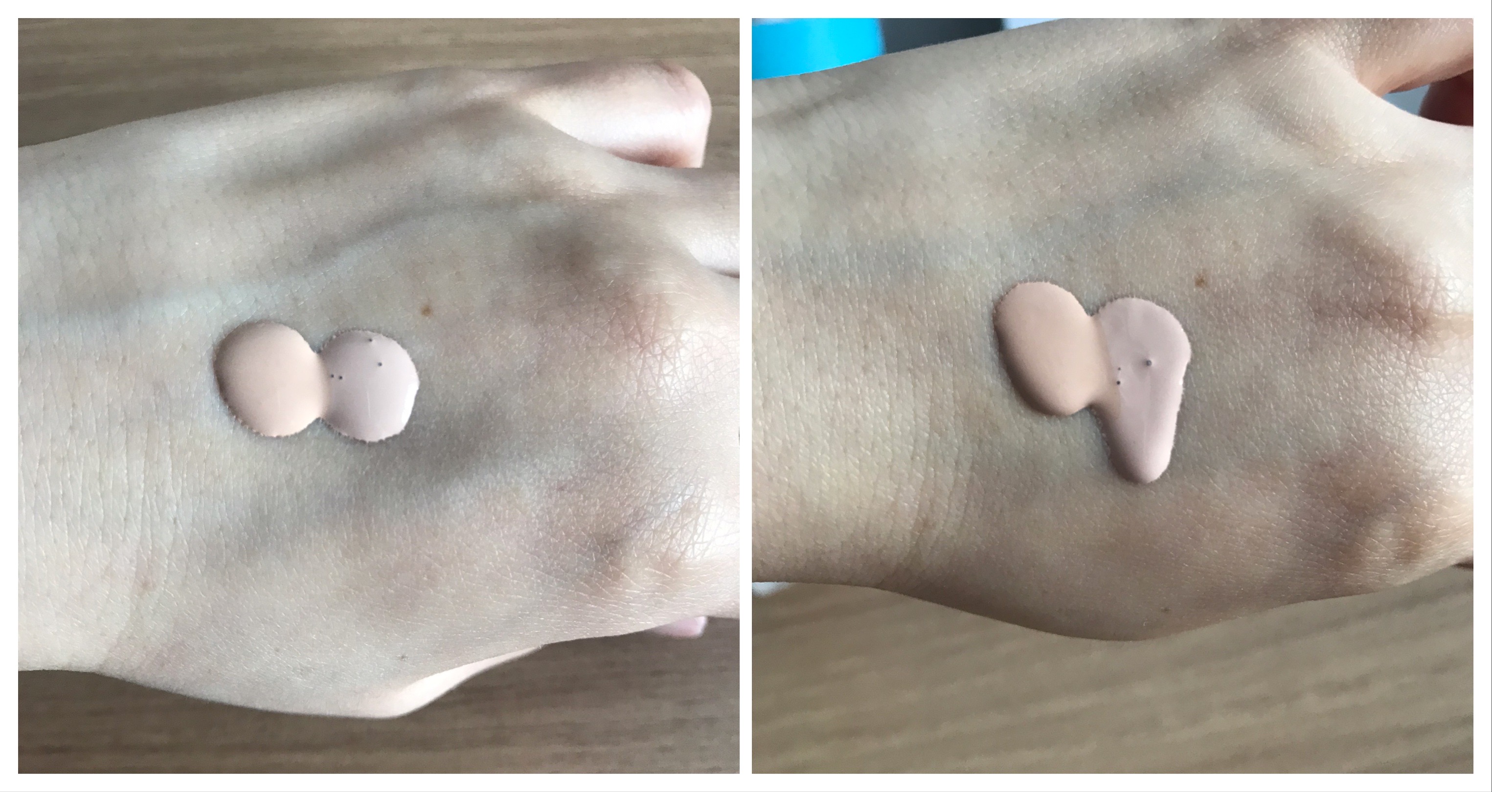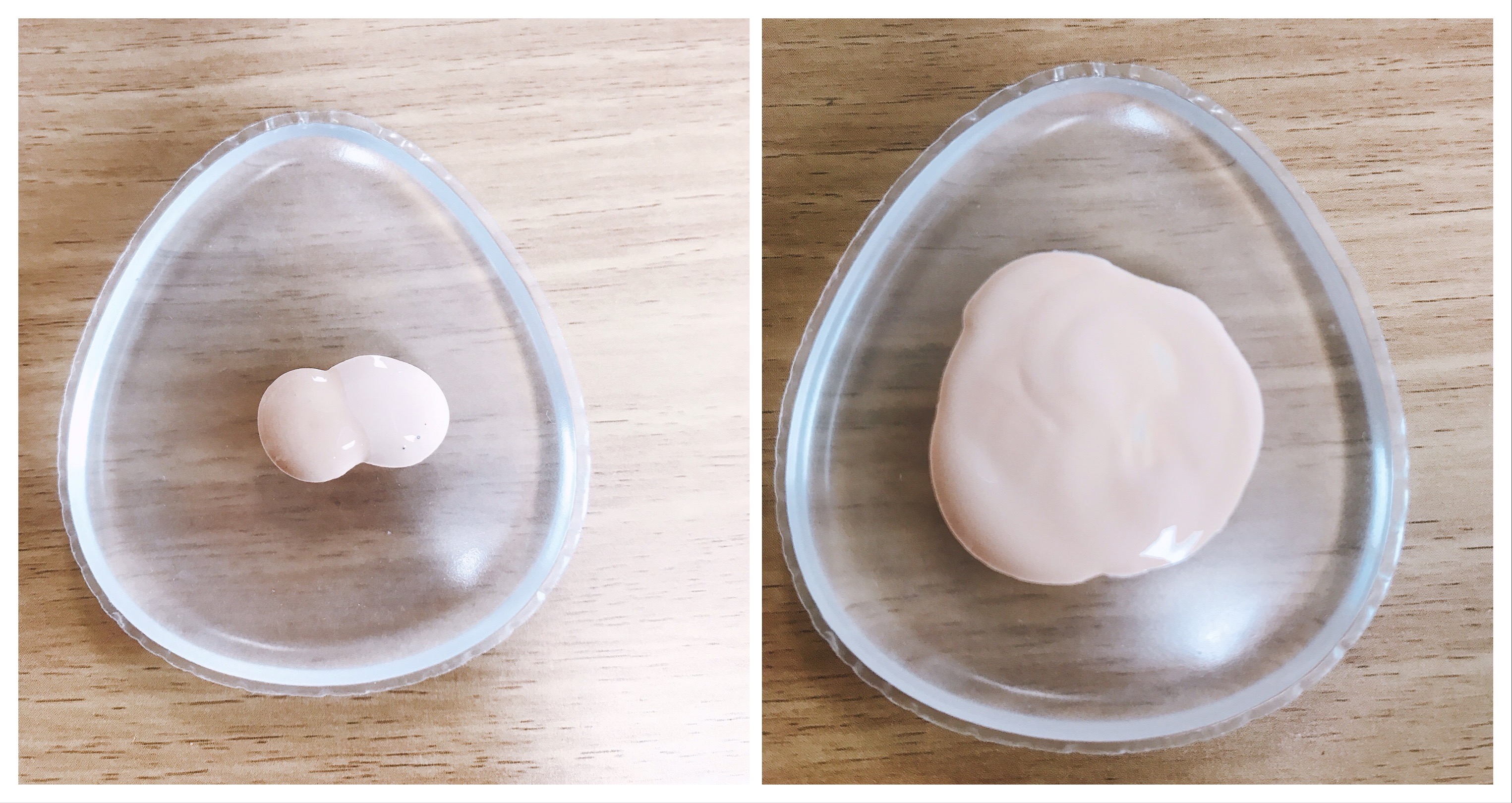 위 사진은 1:1로 섞었는데 피부의 표현에 따라서 커버를 원하면 1:0.5로 쓰기도 하고 피부가 건조하면 0.5:1로 쓰기도 합니다~