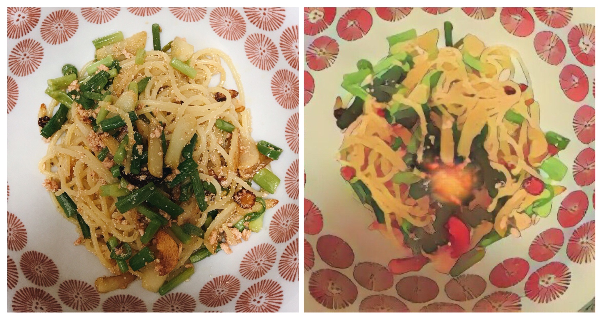마늘쫑과 명란젓으로 만든 오일파스타