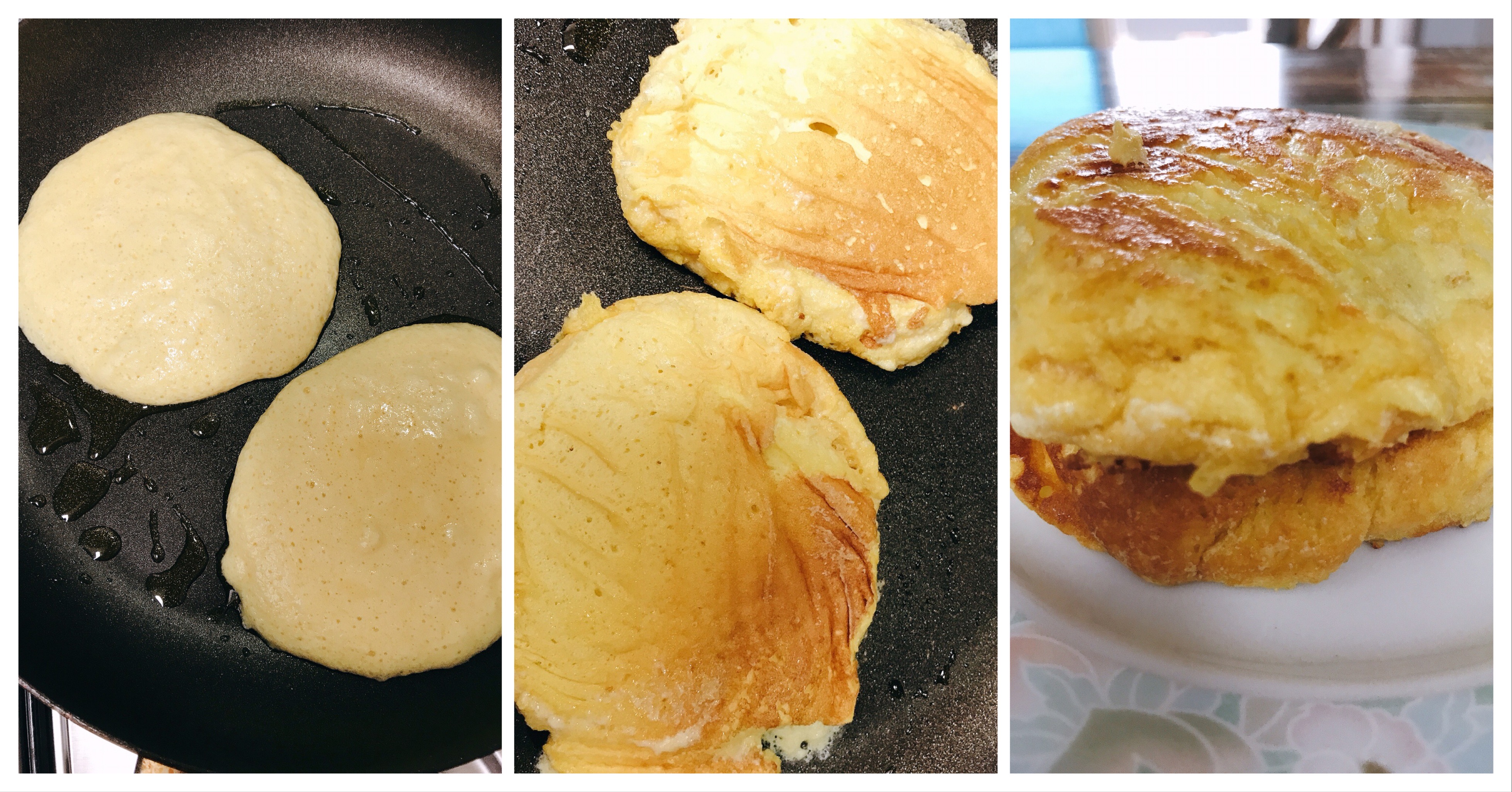 팬에 반죽을 구워주면 되는데 버터가 있으면 버터에 최대한 약한 불에 구워주면 되는데 저는 버터가 없는 관계로 올리브오일로 구워줬어요~