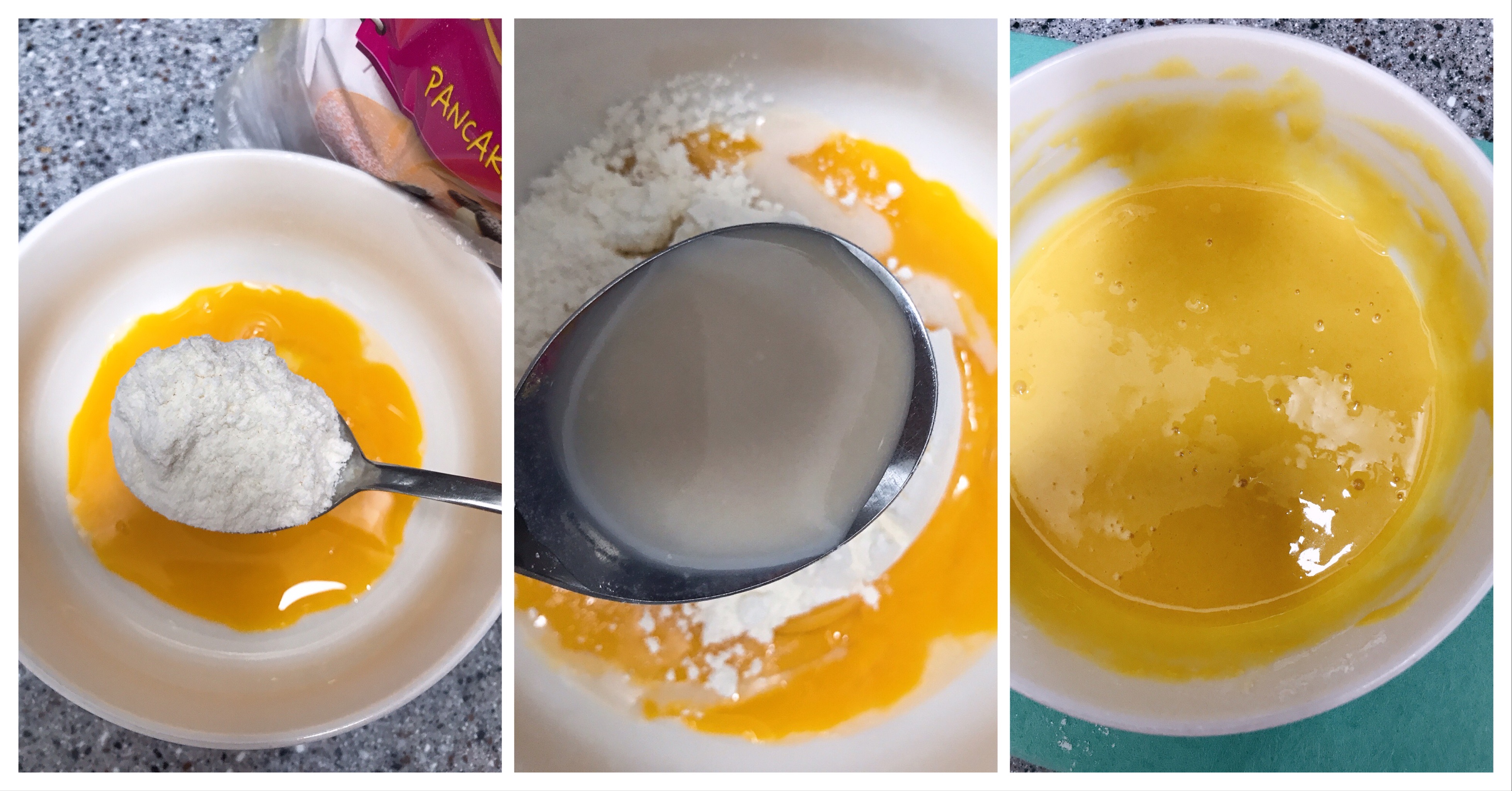 그리고 노른자는 핫케잌가루와 우유를 넣어 섞어주세요~
