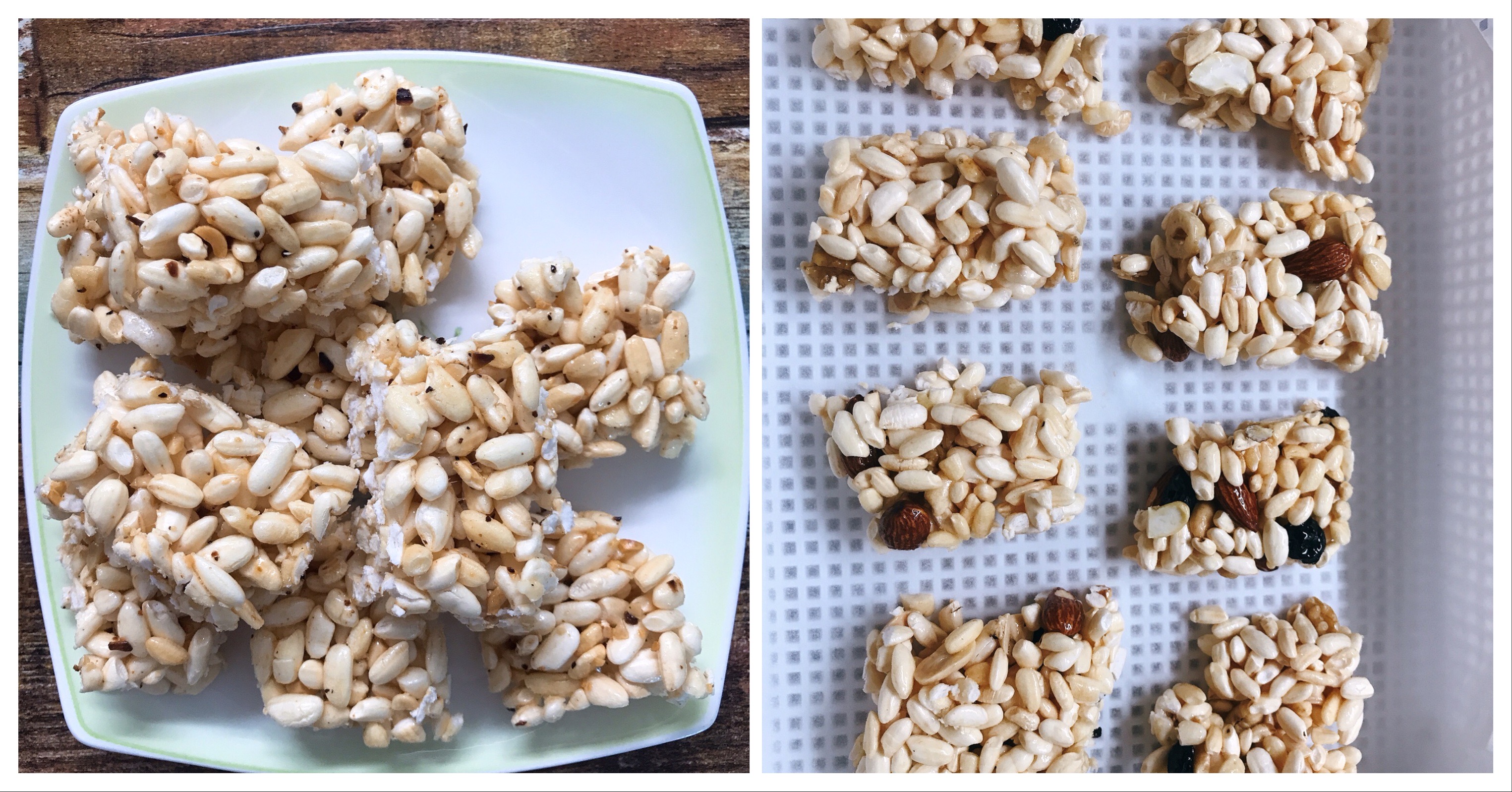 튀밥만 사용한 버전과 견과류를 넣은 버전으로 만들어봤어요~