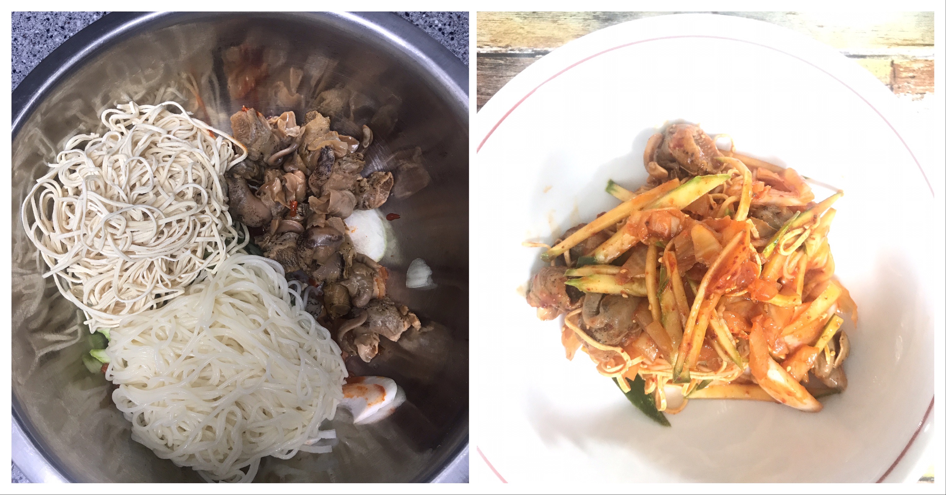 그래도 저는 불을 사용해서 만든다면 그대로 건져서 볶아 사용했고 비빔면이나 쌈두부로 해 먹을 땐 혹시 남을 찝찝함에 끓은 물을 부어 행궈서 찬물로 다시 행궈서 사용했어요~