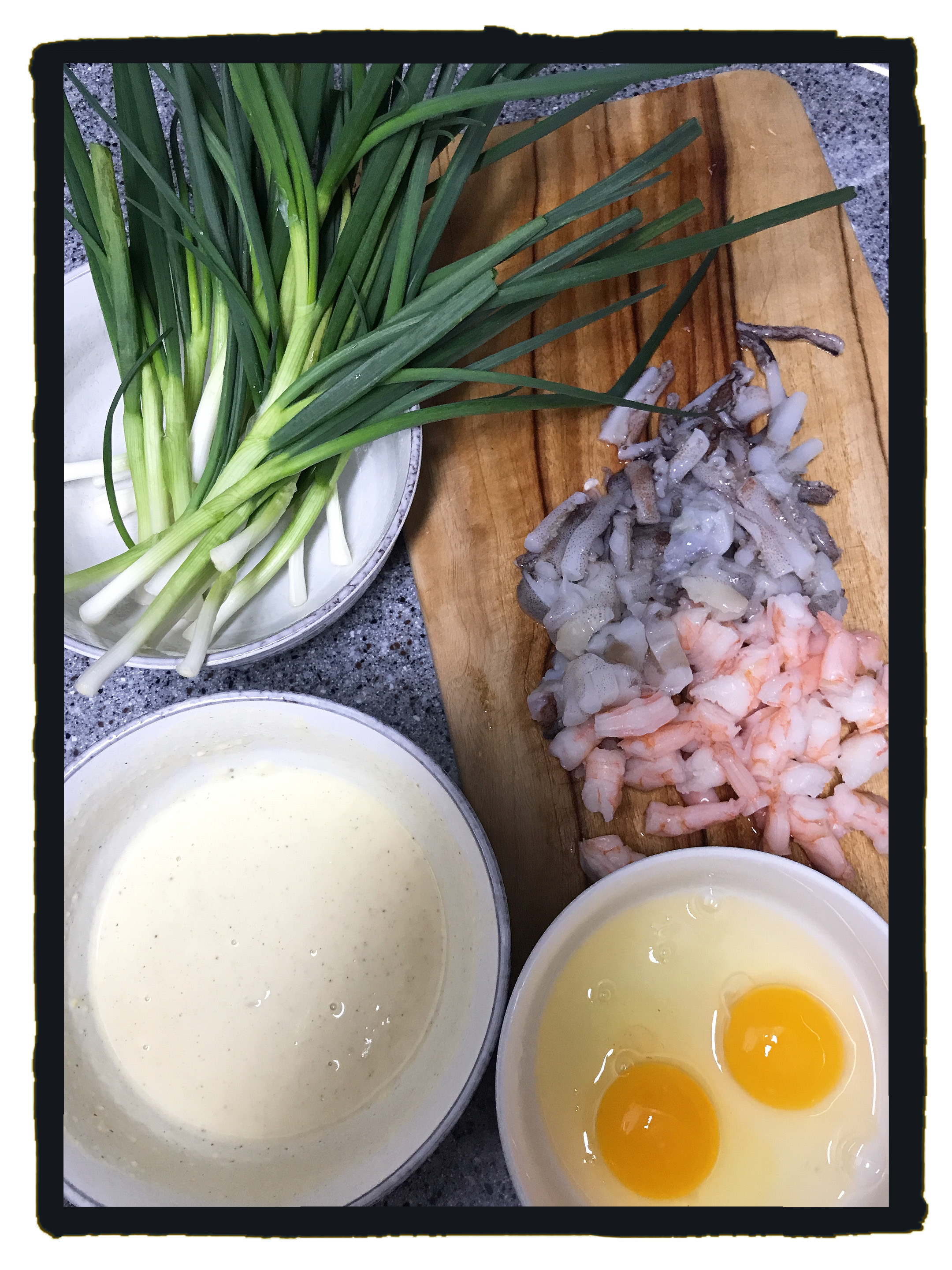 준비물 : 쪽파, 해물(새우, 오징어 등), 부침가루, 계란2알