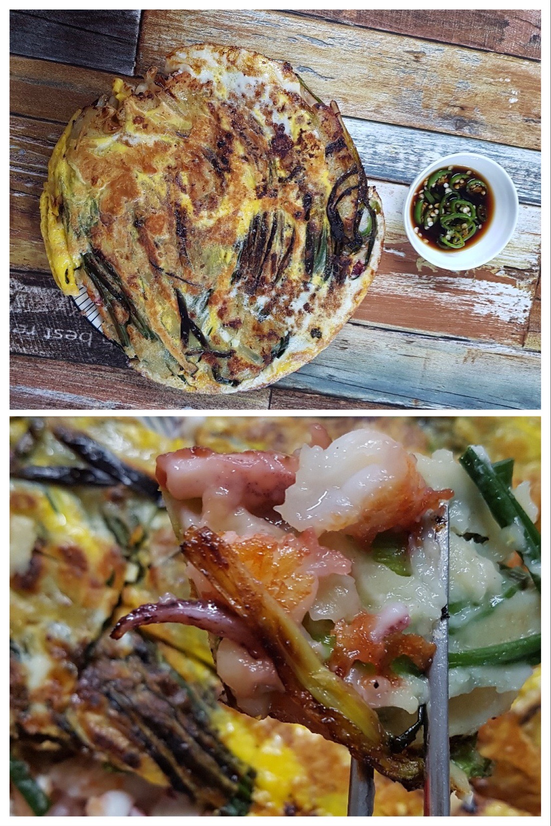 쪽파의 단 맛이 풍부하고 해물 가득 있어 바다맛도 듬뿍 느낄 수 있어 정신 없이 먹었어요~