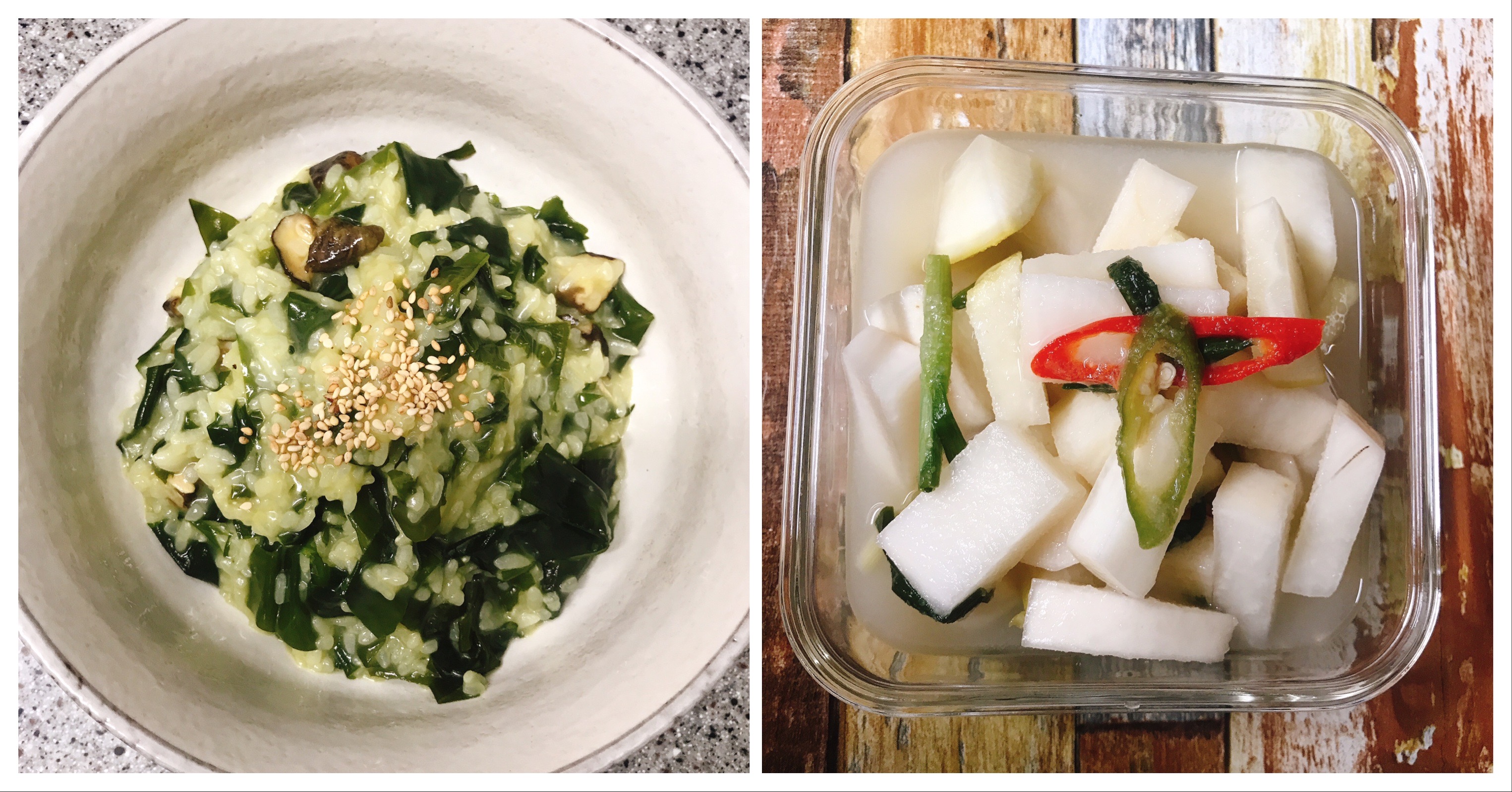재료 : 쌀 미역 들기름 국간장(액젓)